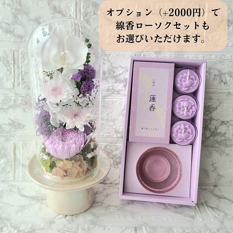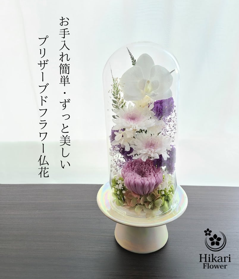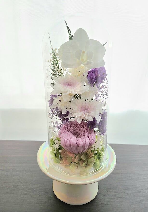 【送料無料】豪華なガラスドーム仏花(大) プリザーブドフラワー